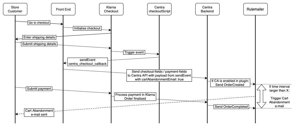 - Once payment is completed, Centra will notify the CRM that checkout was successful, which stops the countdown initialised in step 7,
