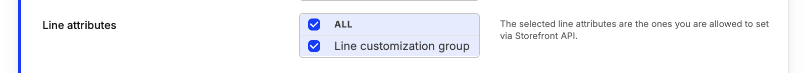 - Enable the specific order line attributes you wish to expose to your frontend.