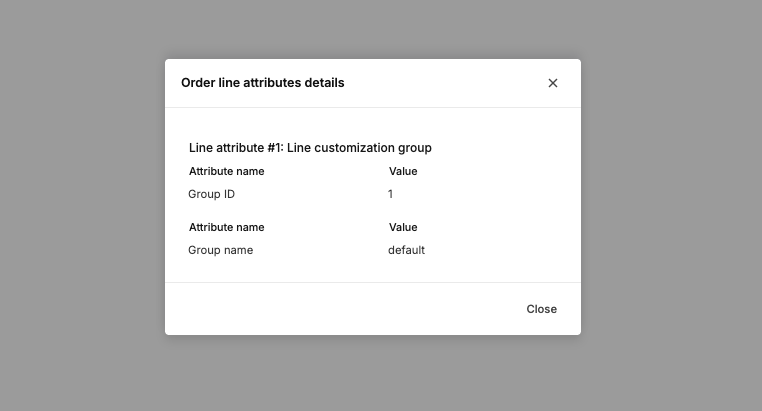 Once the order is placed, line attributes are displayed in Centra according to your visibility settings.